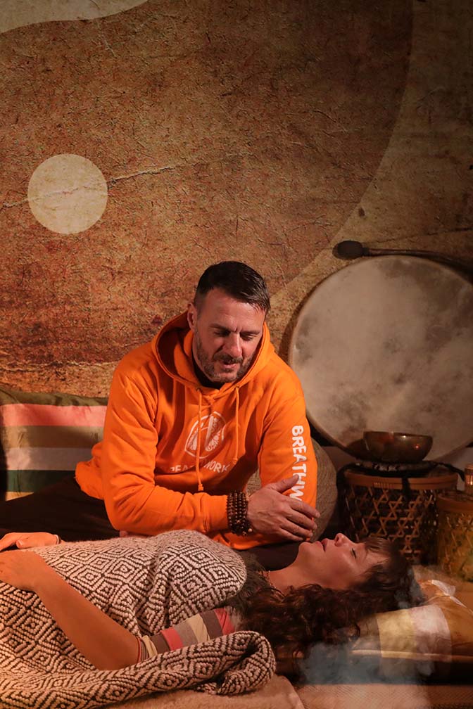 Atmen Nach dem Ankommen beginnt der aktive Teil der Breathwork-Session. Du wirst deinen Atem bewusst vertiefen, dabei führe ich dich Schritt für Schritt durch den Atemprozess. Durch gleichmäßiges, intensives Ein- und Ausatmen wirst du deinen Körper mit frischer Energie versorgen. Mit jedem Atemzug spürst du, wie dein inneres System aktiviert wird und du tiefer in den Prozess eintauchst. Der Atemfluss wird intensiver, während du Blockaden löst, alte Energien freisetzt und Raum für Neues schaffst. Während der gesamten Zeit begleite ich dich, sodass du sicher und getragen durch diese kraftvolle Erfahrung gehst. 2.